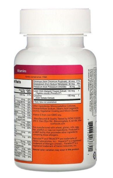 | Description | Now foods multivitamin pill helps to avoid a lack of nutrients in the daily diet. Ensures daily supply of micronutrients • Contributes to vitality and general well-being • Vitamin A is necessary to maintain normal vision • Zinc and vitamins C and D contribute to the normal functioning of the immune system • Selenium and vitamin E help protect cells from oxidative stress • Vitamin B2, B6, B12 and biotin support normal functioning of the nervous system • Calcium, potassium and magnesium contribute to normal muscle function • Iodine is necessary for normal thyroid function • Magnesium and vitamin B6 are important for normal energy-yielding metabolism. One capsule a day, also contains lutein and lycopene. |