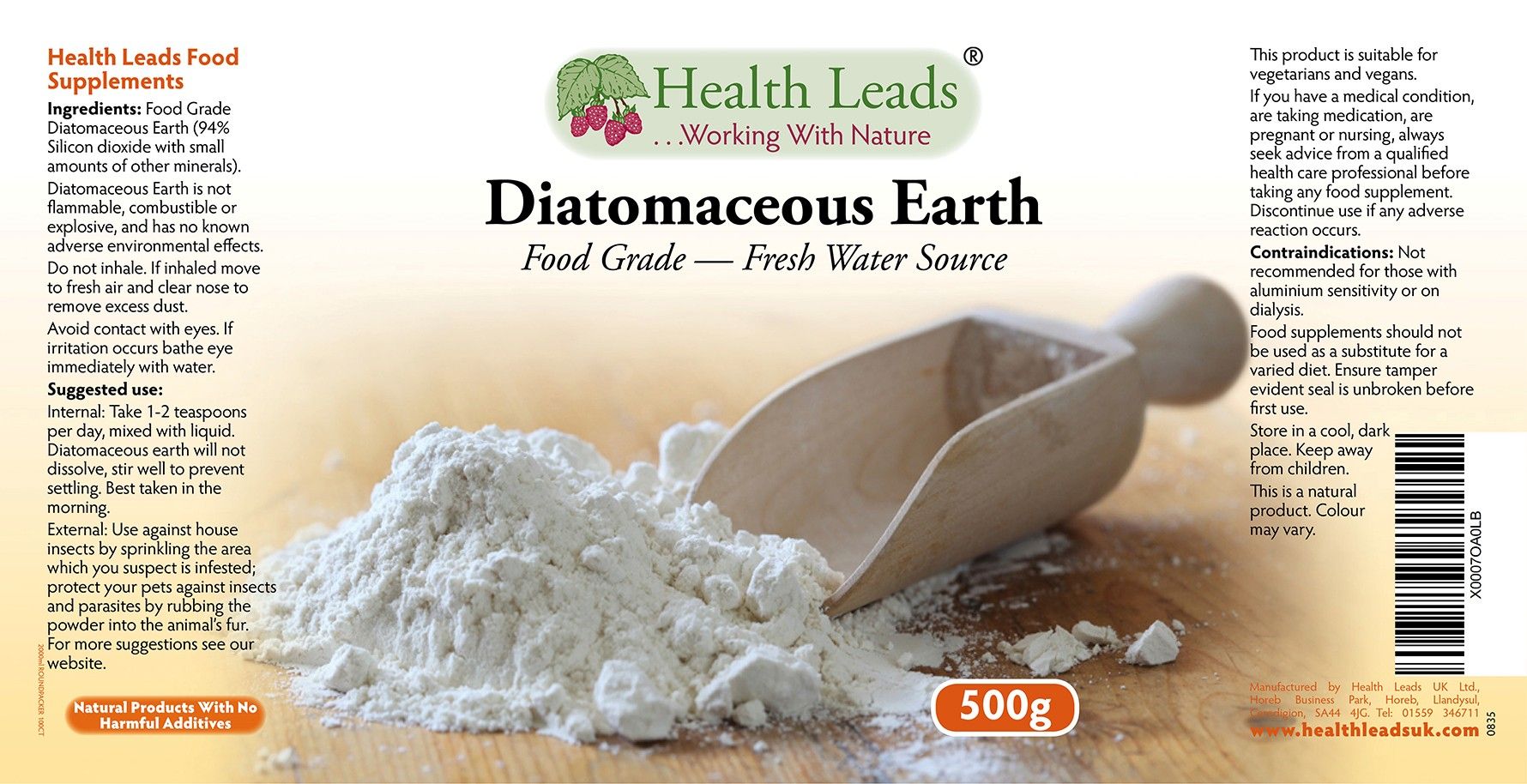 | Content | Health Leads Diatomaceous Earth powder 500 gr |