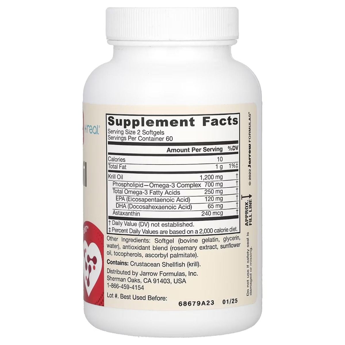 Jarrow Formulas® Krill Oil is a low-temperature extract from Antarctic krill (Euphausia superba) containing phospholipids with omega-3 PUFAs (EPA and DHA). Emerging scientific studies show that krill oil has the potential to support healthy lipid management, brain nutrition, and metabolism. Our unique formula contains K-REAL® Krill Oil, which contains the natural antioxidant astaxanthin.