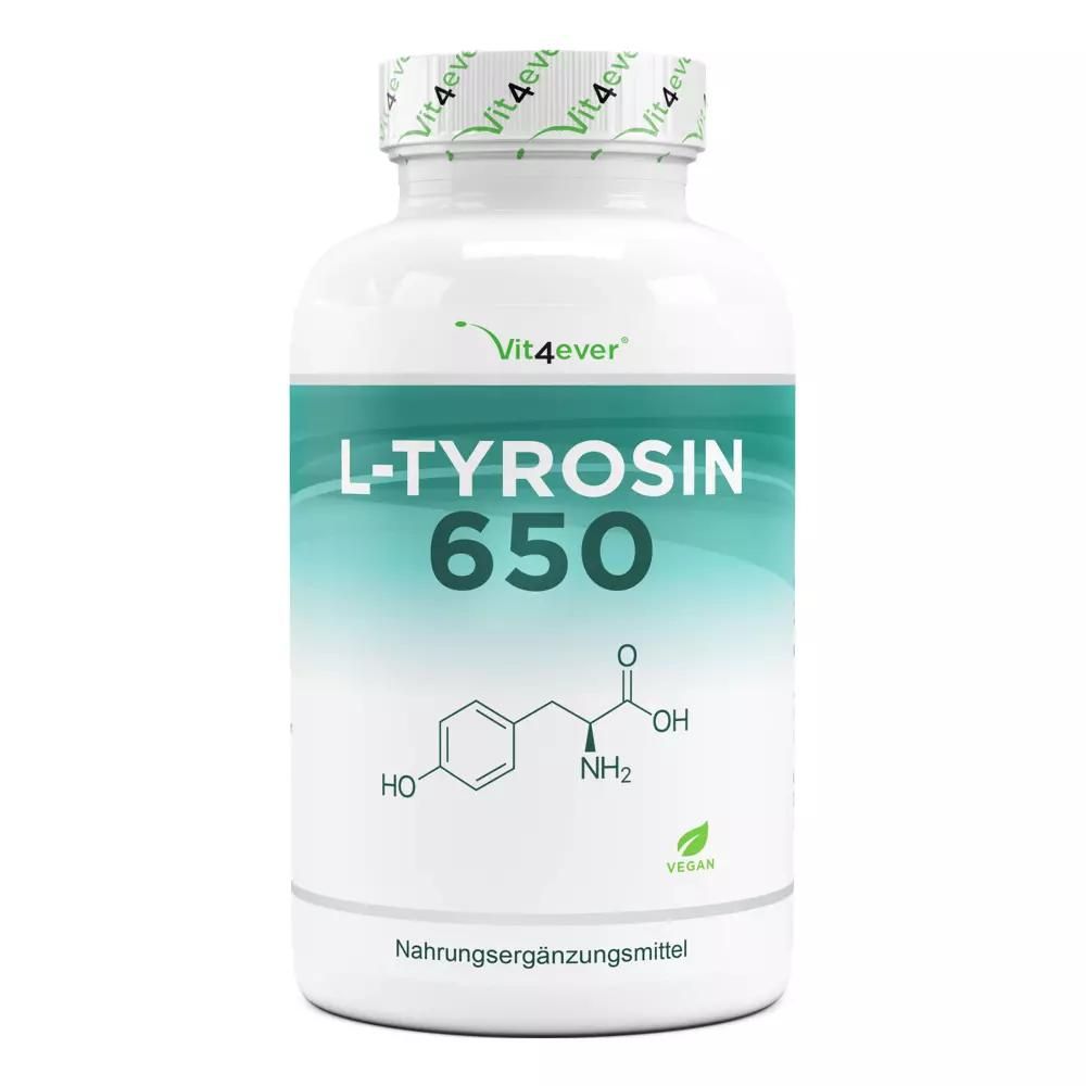 - 365 high-dose capsules with 650 mg L-tyrosine per capsule