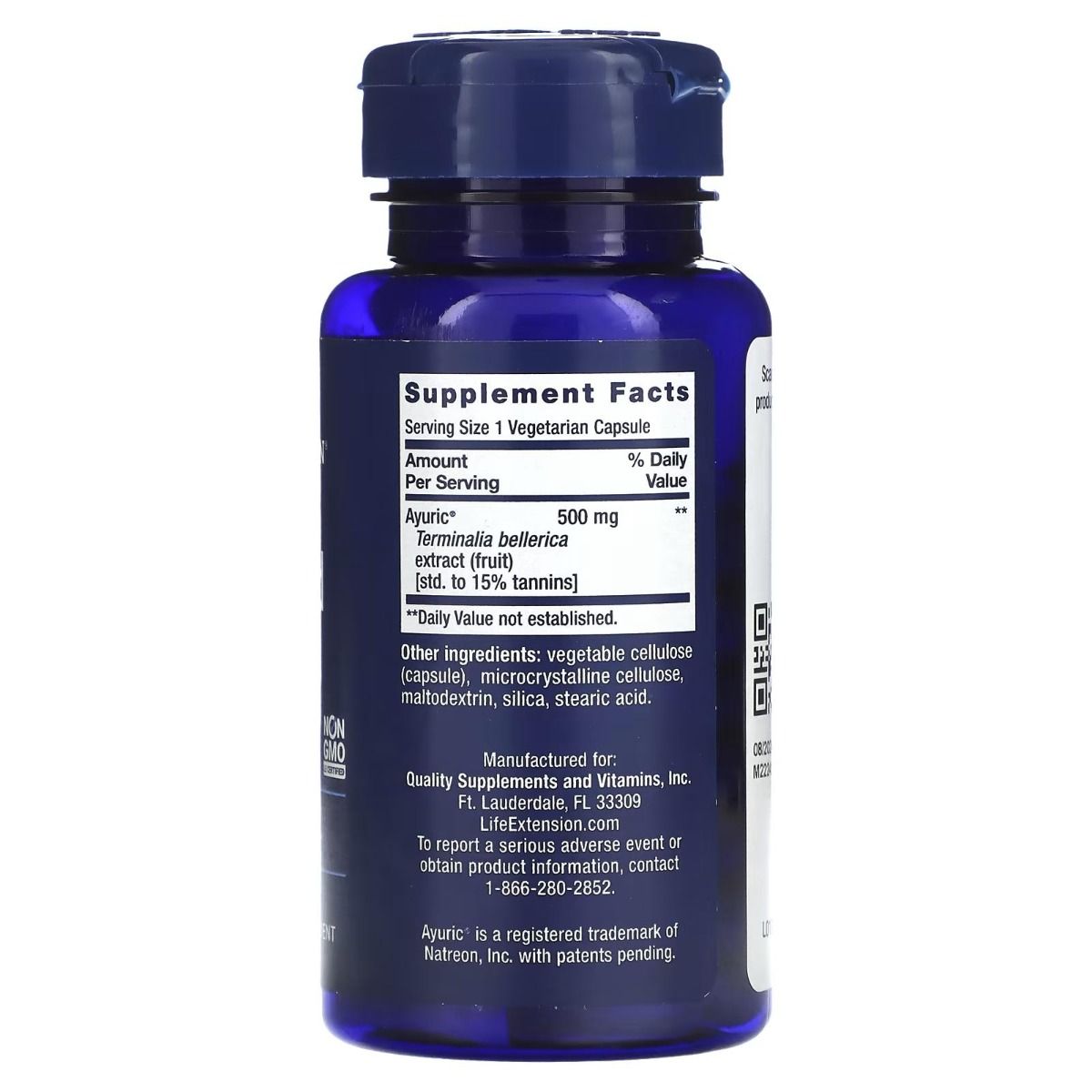 | Ayuric® Terminalia bellerica (bellerica myrobalan fruit extract) [std. to 15% tannins] | 500 mg | ** |