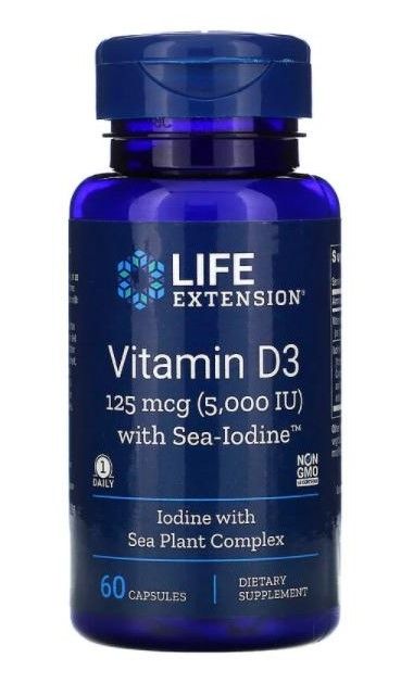 Life Extension Vitamin D3 with Sea Iodine, 125 mcg (5,000 IU), 60 Capsules