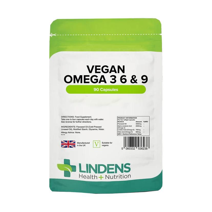 Linden's Vegan Omega 3 6 & 9 1000mg capsules give you all the benefits of these three essential fatty acids in a vegan alternative made from flaxseed oil! Our powerful capsules help maintain healthy cholesterol levels and support normal brain, heart and eye function! Key features of Lindens Vegan Omega 3 6 & 9 1000mg capsules: