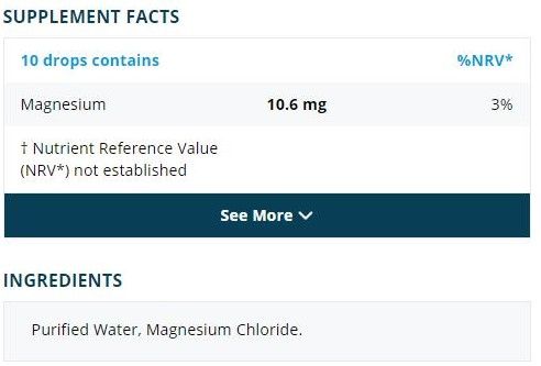 † Nutrient Reference Value (NRV*) not established Other Ingredients: Purified Water, Magnesium Chloride. |