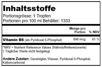 | Content | Gereinigtes Wasser, Pyridoxal-5-Phosphat, Kaliumcarbonat. |