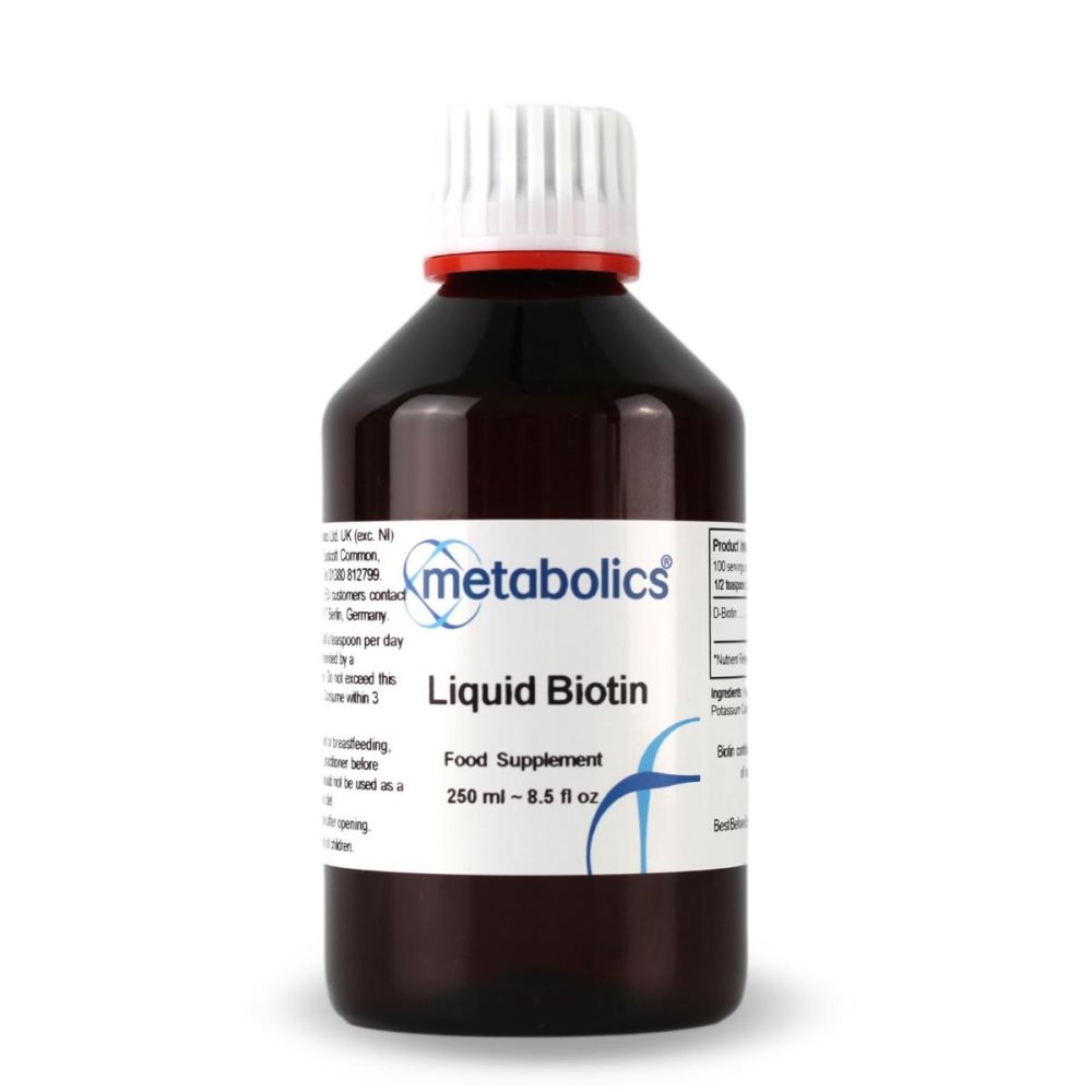 | Description | WHAT IS METABOLICS LIQUID BIOTIN? Metabolics Liquid Biotin was launched alongside Biotin capsules to allow for more flexible dosing. The recommended dose of half a teaspoon (2.5 ml) provides 500 ug of D-Biotin (1000% NRV). Your doctor may modify it to provide a dose that better meets your specific needs. WHAT IS METABOLICS LIQUID BIOTIN GOOD FOR? In addition, biotin contributes to the maintenance of healthy hair, skin and mucous membranes, as stated in the EFSA article “Scientific opinion on the substantiation of health claims related to biotin and the maintenance of normal skin and mucous membranes (ID 121), maintenance of normal hair (ID 121), maintenance of normal bones (ID 121), maintenance of normal teeth (ID 121), maintenance of normal nails (ID 121, 2877), reduction of tiredness and fatigue (ID 119), contribution to normal mental health functions (ID 120) and contribution to normal macronutrient metabolism (ID 4661) pursuant to Article 13(1) of Regulation (EC) No 1924/2006”. It helps maintain skin health by promoting the production of lipids (fats) in skin cells. These lipids are important for maintaining the integrity and functionality of the skin's protective barrier that protects against moisture loss, irritants and infections. Biotin also supports the metabolism of amino acids - the building blocks of proteins - which are crucial for the formation of new skin cells and the repair of damaged tissue. In hair care, biotin is closely linked to promoting strong hair growth and preventing hair loss. It plays a central role in the synthesis of keratin, a protein that forms the structural basis of hair. Optimal biotin levels ensure the proper production of keratin, thus contributing to the development of resilient, radiant hair. In addition, biotin improves the entire infrastructure of the hair follicles, thus increasing their strength and resilience. Biotin also supports the mucous membranes that line various parts of the body, such as the mouth, nose, digestive tract, and urinary tract. By promoting the production of mucins - proteins that form the protective mucous layer - biotin helps maintain the integrity of these membranes. This protective layer helps trap foreign particles, moisten tissues, and protect against pathogens and irritants. Beyond physical health, biotin supports cognitive health by helping to maintain normal psychological functions. This refers to biotin's role in supporting mental performance, including aspects such as concentration, learning, memory and logical thinking. WHO IS METABOLICS LIQUID BIOTIN FOR? It is important to note that certain lifestyle factors can worsen biotin deficiency. For example, prolonged alcohol consumption can hinder the absorption of biotin, potentially leading to lower levels in the body. In addition, reduced biotin levels are often found in smokers, highlighting the need for a conscious diet and lifestyle to maintain adequate biotin intake and support overall health. WHY USE METABOLICS LIQUID BIOTIN? Metabolics has earned a reputation for its unwavering commitment to providing the highest quality nutritional supplements. What sets our liquid products apart is our meticulous approach to manufacturing. Our liquid supplements are carefully formulated from pure water, a testament to our uncompromising commitment to purity and hygiene. The water used in production undergoes a rigorous purification program and achieves a remarkable purity level of 18.2 megaohms (MΩ). This highly refined water ensures that the end result of our liquid products is free of impurities, contaminants or unwanted elements, ensuring an unparalleled standard of quality and potency. In addition, this product is well suited for both vegetarian and vegan diets and adapts to a wide variety of dietary preferences. FOR EACH 250 ML AND 500 ML BOTTLE THERE IS A 100 ml DROPPER BOTTLE FOR SELF-DOSING. |