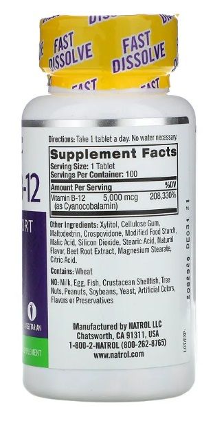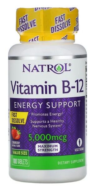 NATROL VITAMIN B-12 STRAWBERRY 5,000 MCG 100 TABLETS