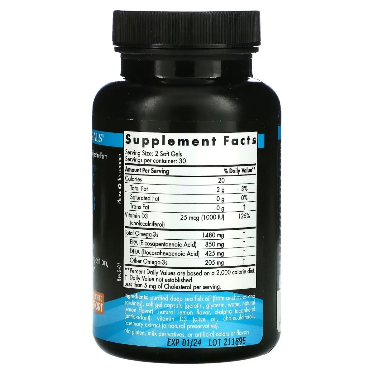 - 1480 mg Omega-3 + 1000 I.U. D3