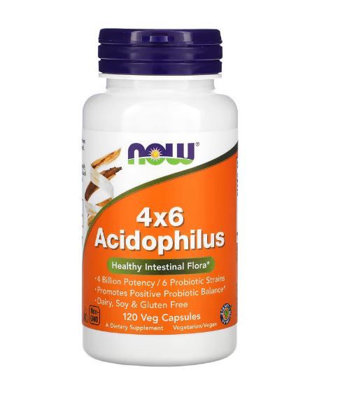 NOW FOODS 4X6 ACIDOPHILUS, 120 VEGGIE CAPS