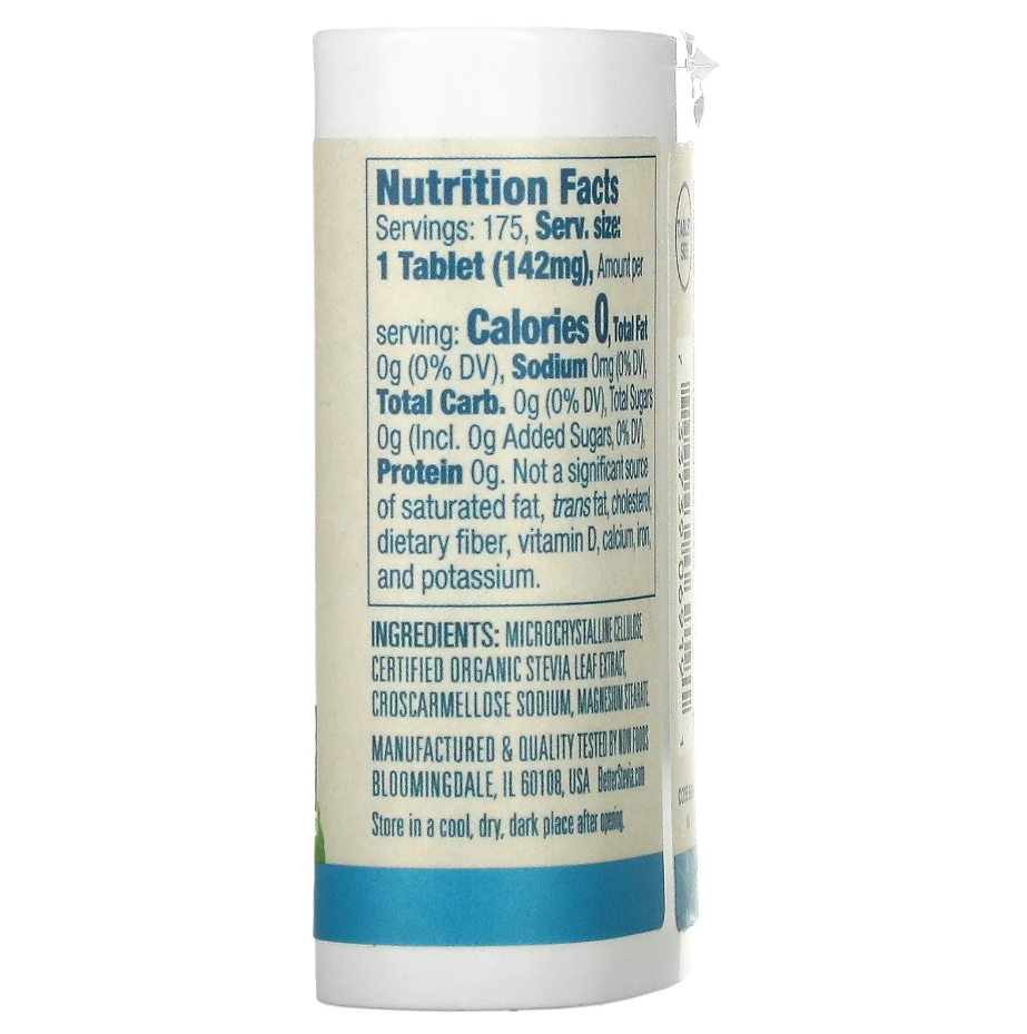 | Usage | For naturally sweetening your favorite drinks. Dissolve 1 tablet in 4-8 ounces of beverage, if desired. Sweeten to taste. Remember, a little BetterStevia® goes a long way. |