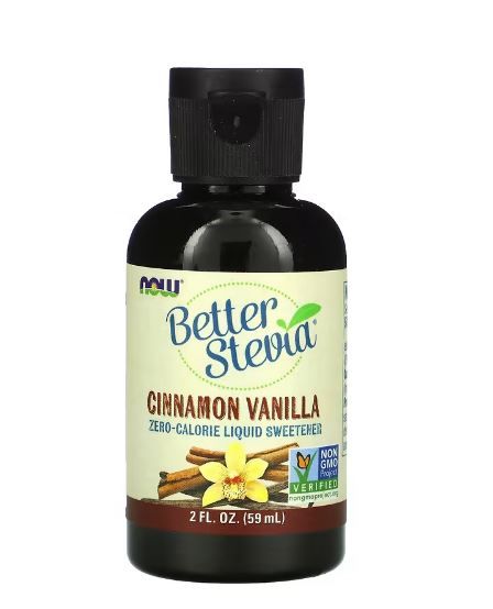 NOW FOODS BETTER STEVIA ZERO-CALORIE LIQUID SWEETENER CINNAMON VANILLA, ZERO-CALORIE LIQUID SWEETENER, CINNAMON VANILLA, 2 FL OZ (60 ML)