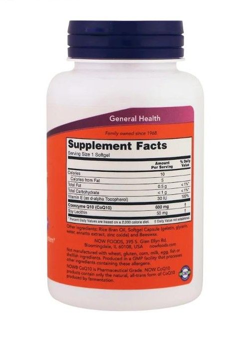 Now Foods CoQ10 600 mg with Lecithin and Vitamin E 60 Softgel Capsules