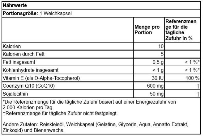 | Description | Coenzym Q10 (CoQ10) ist eine vitaminähnliche Verbindung, die bei der Energieproduktion in den Zellen eine große Rolle spielt. CoQ10 kann im ganzen Körper nachgewiesen werden, ist aber insbesondere im Herzen, in der Leber und der Niere konzentriert, lässt jedoch mit dem Alter nach. CoQ10 kann mit Vitamin E als starker freier Radikalfänger in den Zellmembranen sowie in den Blutgefäßen kombiniert werden. Bei jahrelangen wissenschaftlichen Untersuchungen wurde nachgewiesen, dass CoQ10 hilft, ein gesundes Herz-Kreislauf-System und eine normale Funktion des Nervensystems aufrechtzuerhalten. NOW CoQ10 ist ein Mittel in pharmazeutischer Qualität. Now CoQ10 Produkte enthalten ausschließlich natürliches all-trans-CoQ10, das durch Fermentation erhalten wird. |