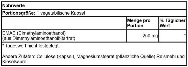 | Description | DMAE (Dimethylaminoethanol) ist ein natürlicher Amino-Alkohol, der in winzigen Mengen im Gehirn zu finden ist. Er gilt generell als ein Vorläuferstoff zum essentiellen Nährstoff Cholin, der nötig ist, damit das Gehirn Acetylcholin produziert, einen Neurotransmitter, der erforderlich ist bei der Übertragung von Nervensignalen und einer gesunden Gehirnfunktion. |