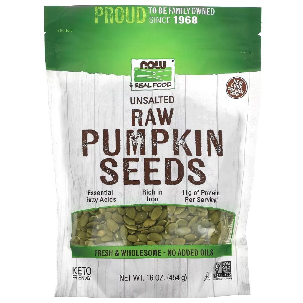 NOW Foods, Real Food, Raw Pumpkin Seeds, Unsalted, 454 g