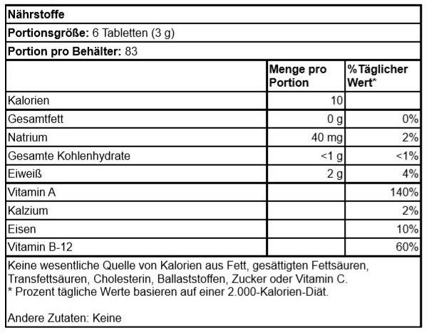| Content | 100% Bio Spirulina - und sonst nichts. |