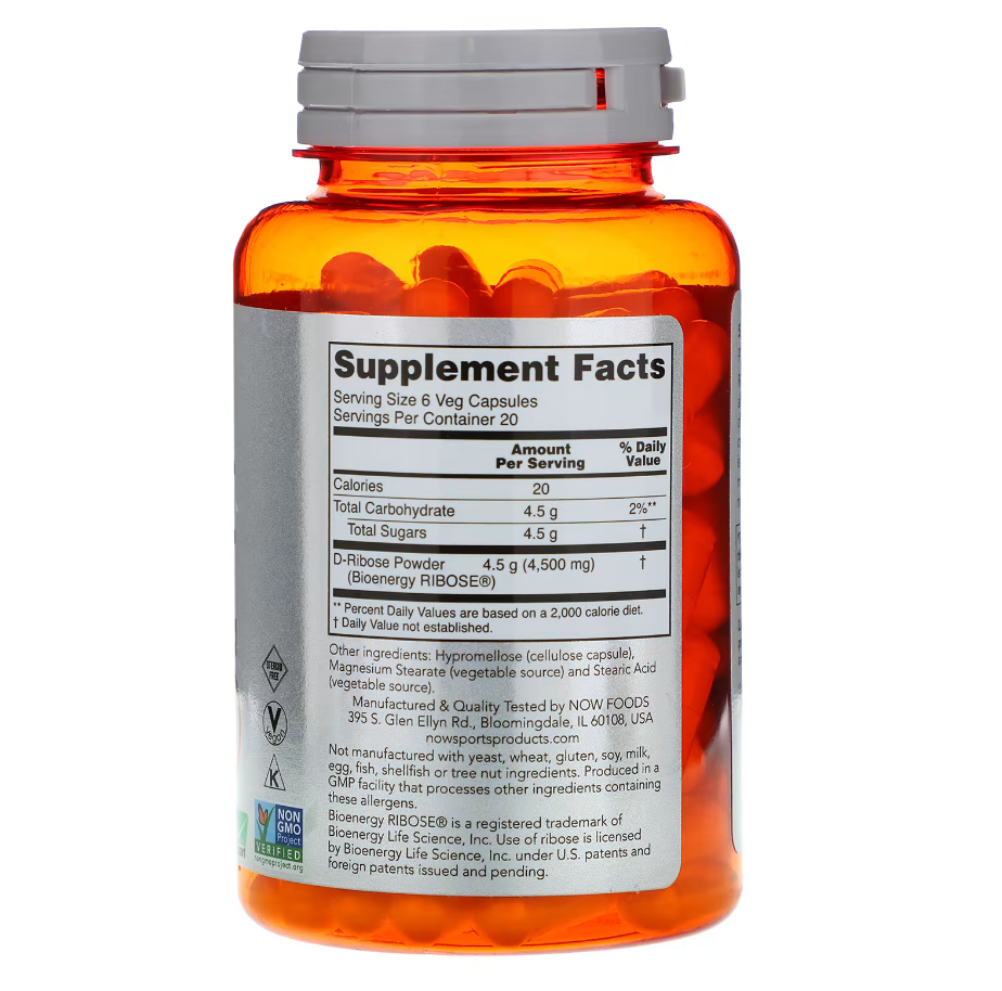 NOW Foods Sports D-Ribose 750 mg 120 Vegetarian Capsules