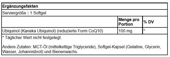 | Ubiquinol (Kaneka Ubiquinol) (reduced form CoQ10) | 100 mg | * |