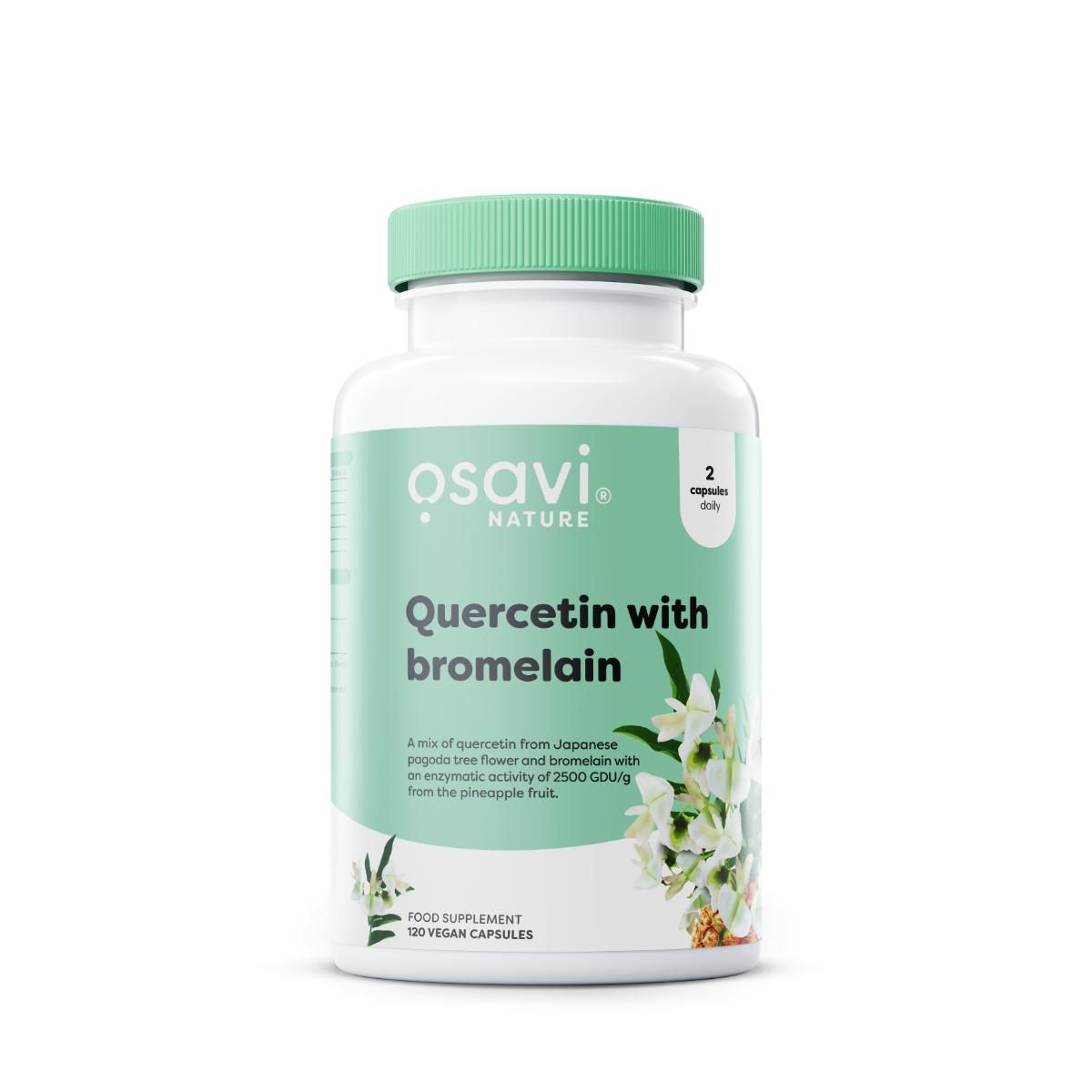 | Description | Looking for a product to supplement your diet with ingredients of natural origin?Find out how quercetin with bromelain can benefit you. Every day, we are exposed to a number of external factors that can disturb the harmony of the body. Not surprisingly, in addition to leading a healthy lifestyle, which includes maintaining a balanced diet, regular physical activity and getting enough sleep, many people look for additional ways to support their bodies. Our food supplement is a combination of natural ingredients - quercetin, a bioactive flavonoid - and bromelain, a proteolytic enzyme extracted from pineapple fruit. These ingredients are ideal for adding to a varied diet. Quercetin with bromelainOSAVI is a supplement containing FlaviPure® - a high-quality quercetin derived from the flowers of the Japanese pearl plant (Sophora japonica) - and bromelain, a proteolytic enzyme extracted from the fruit of the edible pineapple (Ananas comosus). The amount of bromelain contained in the product is 2500 GDU/g. A daily serving provides as much as 500 mg of quercetin, which is extracted from 6,000 mg of Japanese pearl flowers, and 200 mg of bromelain, which is extracted from 3,000 mg of edible pineapple fruit. The recommended daily serving of the supplement is 2 capsules, which we recommend taking after a meal. Choose a pack that suits your needs. 120 capsules will last you as long as 2 months of supplementation, while 60 capsules will be the ideal option for those looking for something to use for a month.. |