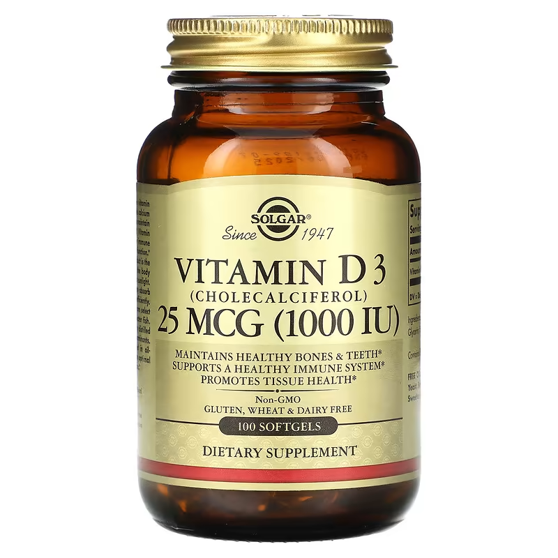 Solgar, Vitamin D3 (Cholecalciferol), 25 mcg (1,000 IU), 100 Softgels