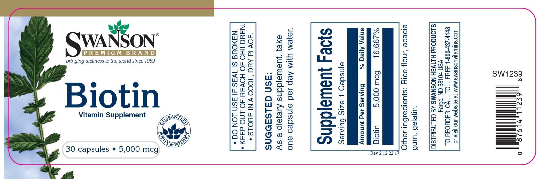 SWANSON BIOTIN 5,000 MCG 30 CAPSULES