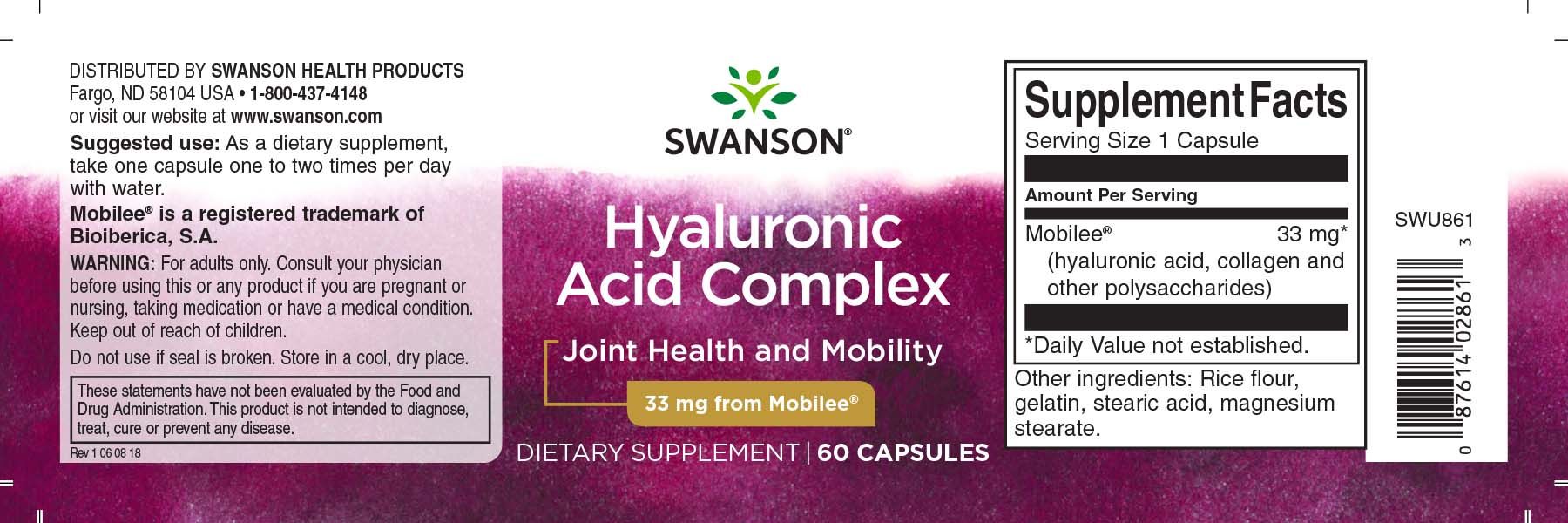 Swanson Hyal-Joint Hyaluronic Acid Complex 33 mg 60 Caps