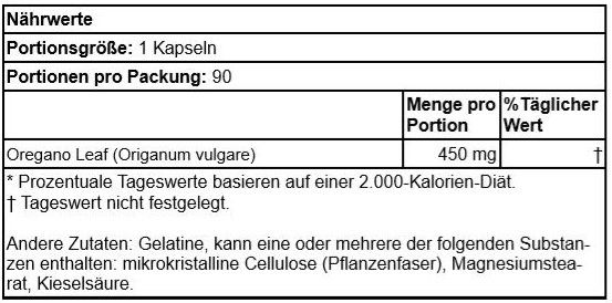 | Description | Die meisten von uns denken, Oregano sei ein kulinarisches Kraut, das zum Würzen unserer italienischen Lieblingsgerichte verwendet wird. Kräuterexperten werden Ihnen jedoch mitteilen, dass Oregano reich an flüchtigen Ölen und nützlichen Flavonoiden ist, die es zu einem hervorragenden Stärkungsmittel für die Erhaltung der allgemeinen Gesundheit und Vitalität machen. Swanson´s praktischen Kapseln machen es einfacher als je zuvor, die zahlreichen gesundheitlichen Vorteile von Oregano zu nutzen. |