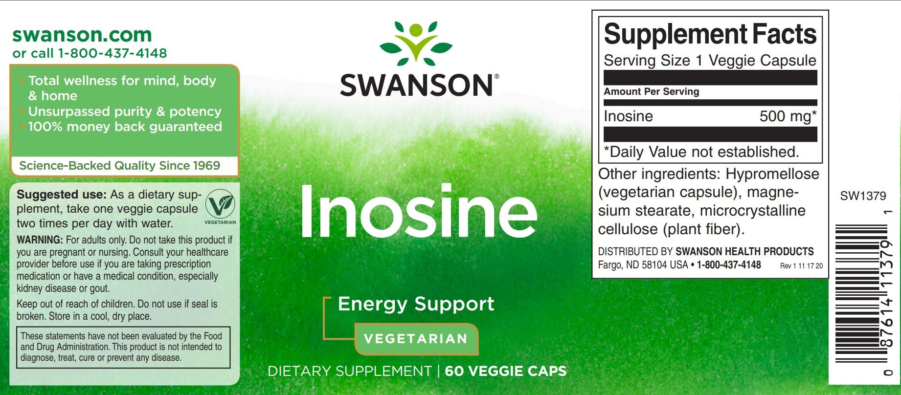 SWANSON PREMIUM - INOSINE - 60 VEGETARIAN CAPSULES