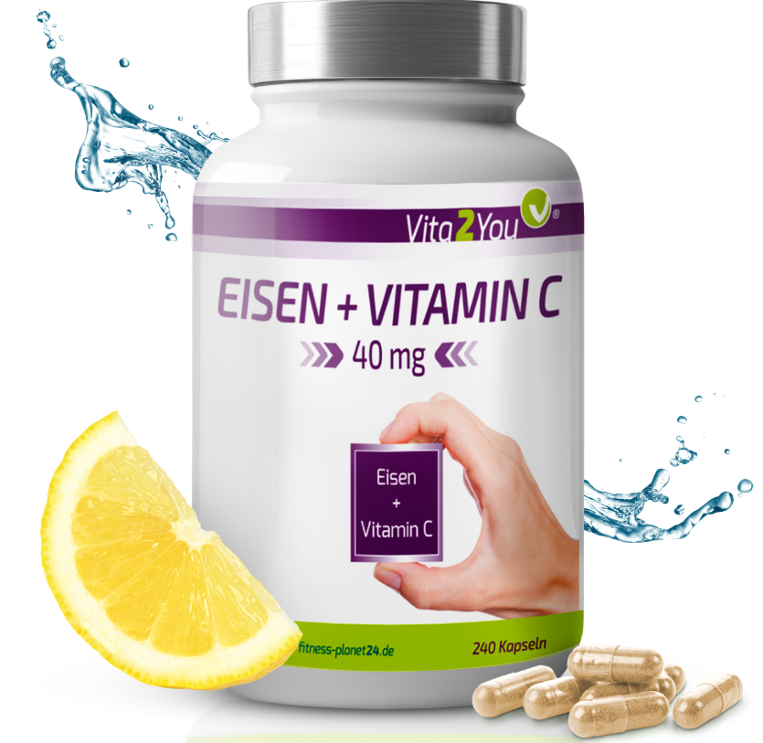 Product information "Vita2You Iron + Vitamin C 40mg - 240 Capsules - Iron Bisglycinate - Acerola Extract - Premium Quality"