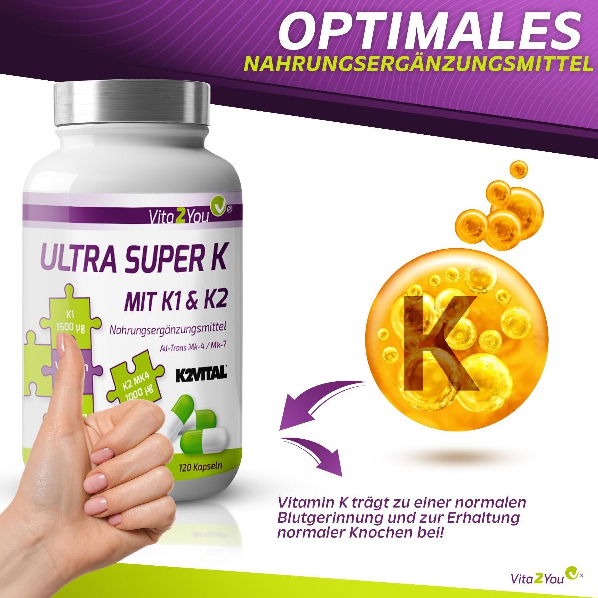 Product information "Vita2You Ultra Super K - 120 Capsules - 2700μg Vitamin K - Vitamin K2 and K1 - High Dose"