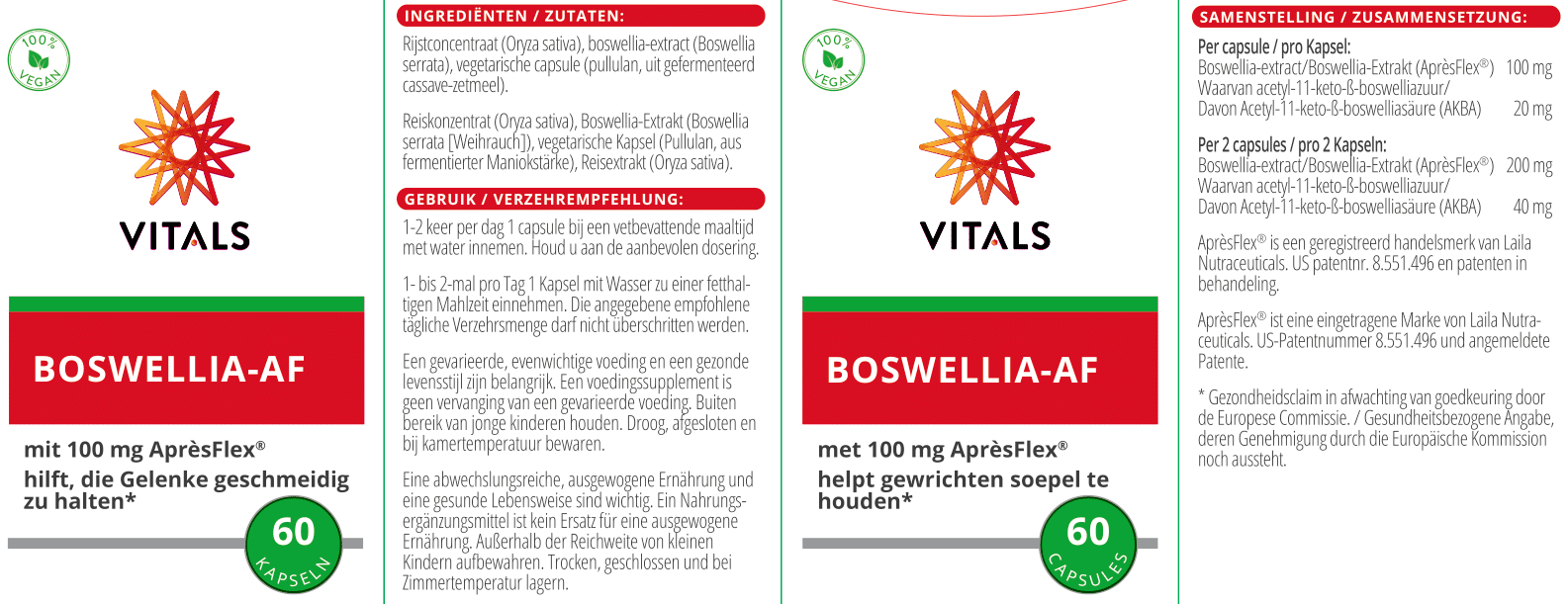 Boswellia-AF from Vitals contains the new, superior AprèsFlex®. A true next-generation Boswellia extract that has been further developed in terms of bioavailability. And with success. AprèsFlex is better absorbed and therefore even more effective. In addition, the speed with which results can be achieved is impressive. Research shows that the first results can be seen after just five days. |