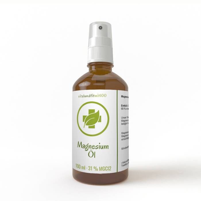 | Description | 100 ml Magnesiumöl in Glasflasche inkl. Zerstäuber/Sprühkopf. Höchste Qualität, mit reinem energetisiertem Wasser hergestellt - Magnesium-Öl 100 % rein, naturbelassen, ohne Konservierungsstoffe. Vitalundfitmit100´s Magnesium-Öl ist eine Magnesium-Chlorid-Lösung natürlichen Ursprungs. Magnesiumöl ist kein Öl im eigentlichen Sinne. Wegen des hohen Sättigungsgrades fühlt es sich lediglich so an als wäre es Öl. Magnesium Öl ist vielseitig einsetzbar. Es gibt sicherlich noch viele weitere Anwendungsgebiete wo Magnesiumöl zum Einsatz kommen kann. Nähere Informationen im Internet oder einschlägiger Fachliteratur. |