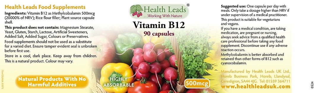 | Contents | Health Leads Vitamin B12 500mcg x 90 capsules |