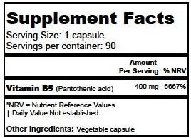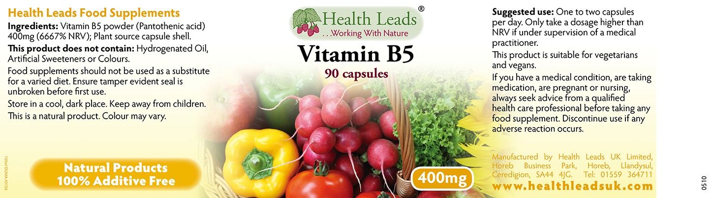 | Contents | Health Leads VITAMIN B5 (PANTOTHENIC ACID) 400 MG X 90 CAPSULES |