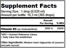 | Description | Carlson Labs Vitamin D Drops 2000 IU as Cholecalciferol with Vegetable Oil (Coconut/Palm) ● Supports the absorption of calcium and phosphorus ● Contributes to normal blood calcium levels ● Vitamin D supports the maintenance of muscle function ● Contributes to the maintenance of normal bones and teeth ● Supports the normal function of the immune system ● Participates in cell division |